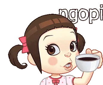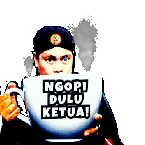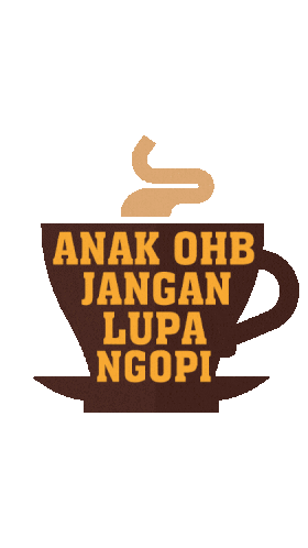 Animated sticker featuring a coffee cup with the Indonesian text 'Anak OHB Jangan Lupa Ngopi', reminding OHB kids to drink coffee.