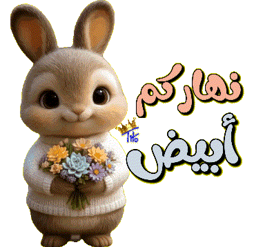 a bunny holding a bouquet of flowers next to a foreign language sticker