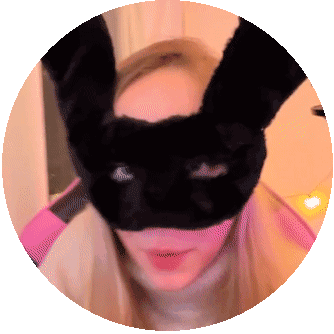 a woman wearing a black bunny mask with ears on her head