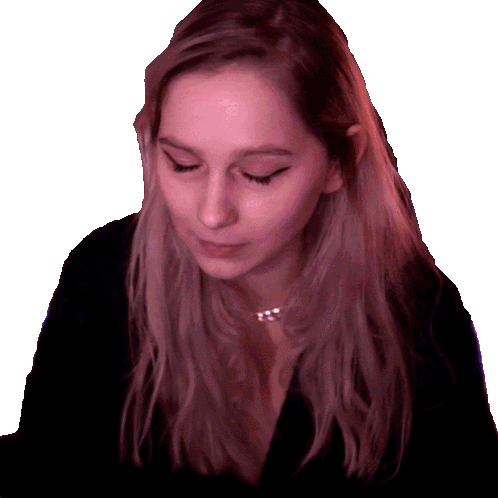 a woman with long blonde hair is wearing a black top