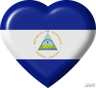 A glossy, heart-shaped sticker featuring the vibrant flag of Nicaragua with its coat of arms, symbolizing love for the nation.
