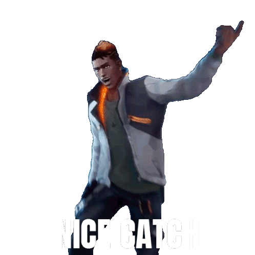 Valorant agent Phoenix points and smiles, exclaiming 'Nice Catch' in this animated sticker.
