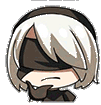 An animated chibi sticker of Nier Automata's 2B, with her signature blindfold and white hair, in a thoughtful pose.