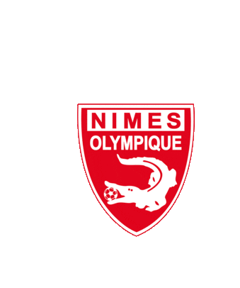 The official logo of Nimes Olympique Football Club, featuring a stylized white alligator holding a soccer ball within a red shield.