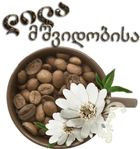 a cup filled with coffee beans and a flower with the words good morning in the background