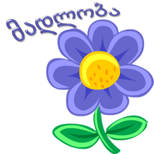 a purple flower with a yellow center and green leaves is surrounded by foreign writing