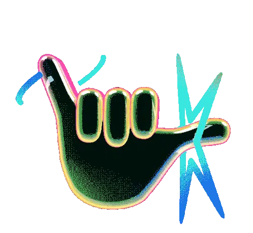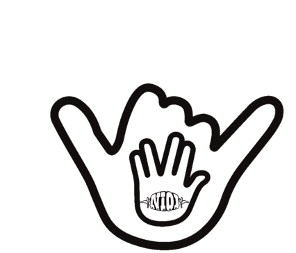 Nioi Sound Hawaii animated sticker featuring a shaka hand with a smaller hand and 'KID' text, embodying a chill vibe.