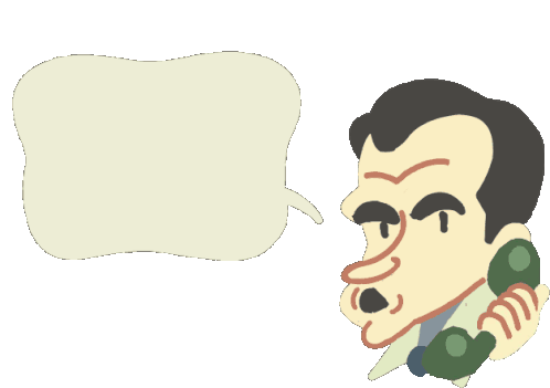 Cartoon illustration of Richard Nixon talking animatedly on a telephone with an empty speech bubble, conveying a strong message.