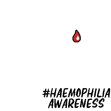 A red blood drop with the hashtag #HAEMOPHILIA AWARENESS, promoting awareness for bleeding disorders.
