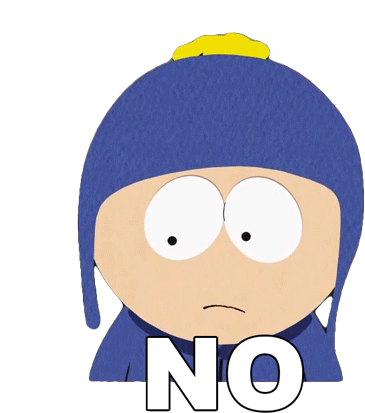 Craig Tucker from South Park with a shocked expression, emphatically saying "NO" in a strong denial.