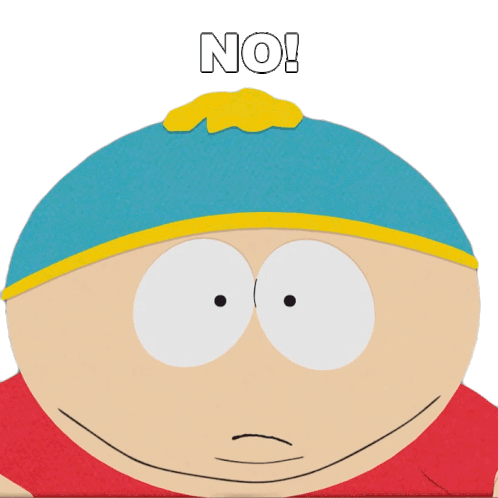 Eric Cartman from South Park emphatically says "NO!" with a stern expression, refusing something.