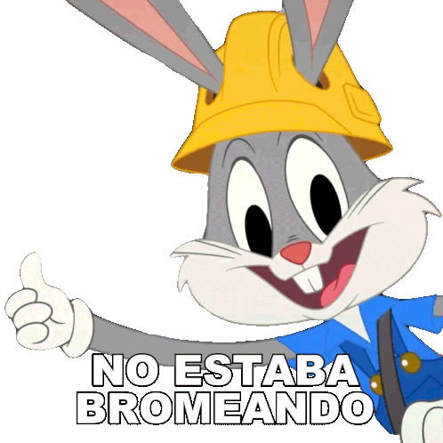 Bugs Bunny, wearing a hard hat, gives a thumbs up with the Spanish caption 'No Estaba Bromeando'.
