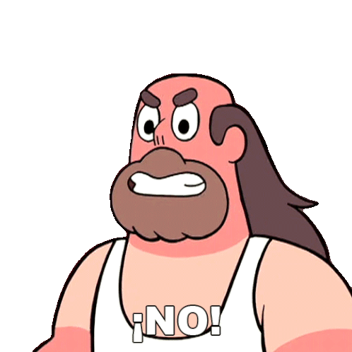 Greg Universe from Steven Universe emphatically says 'No!' with a surprised and angry expression, conveying strong refusal.