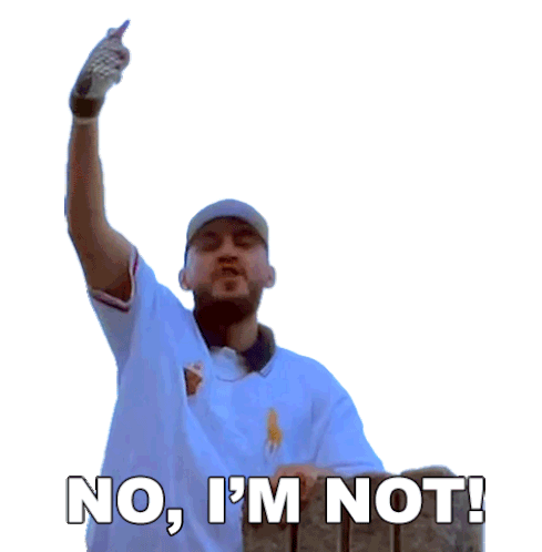 Casey Frey emphatically denies something, raising his arm and saying 'No, I'm Not!' in this expressive sticker.