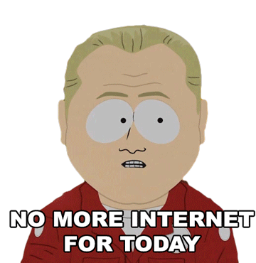 A South Park character, Randy Marsh, declares 'NO MORE INTERNET FOR TODAY' with a tired expression, signaling a break from online activity.