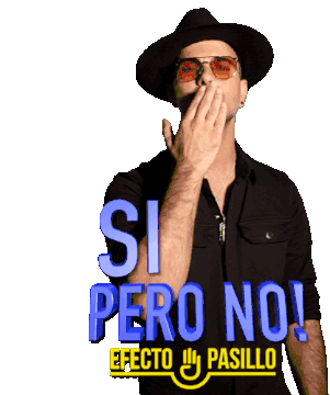 Efecto Pasillo's singer blows a kiss then wags his finger, with the caption 'SI PERO NO!'.