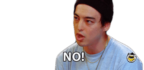 Joji, from Hot Ones, emphatically says 'NO!' with a dismissive look, perfect for rejecting ideas or situations.