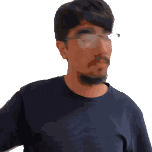 a man with glasses and a beard is giving a thumbs down