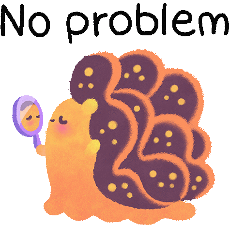 a cartoon of a snail looking at itself in a mirror with the words no problem above it