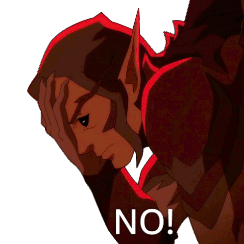 Saundor from The Legend of Vox Machina expresses strong disbelief and frustration, emphatically saying "NO!".