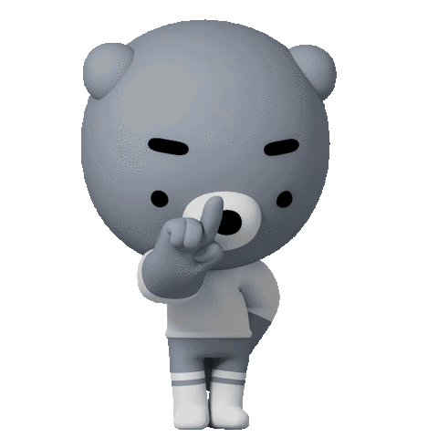 A grey bear-like character shakes its head and raises a finger, indicating a strong disagreement or saying no.