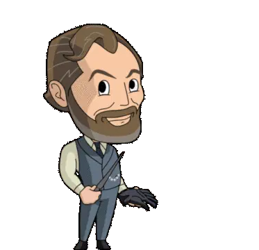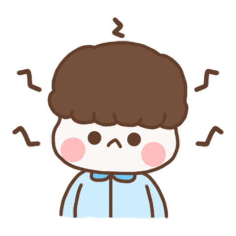 Cute cartoon character with brown hair and pink cheeks looks stressed and frustrated, with wavy lines around its head.