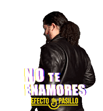 Nau Barreto of Efecto Pasillo sings 'No Te Enamores' in this animated sticker, featuring the song title.