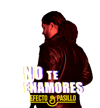 Nau Barreto from Efecto Pasillo in a red-tinted sticker for 'No Te Enamores', turning with a glitch effect.