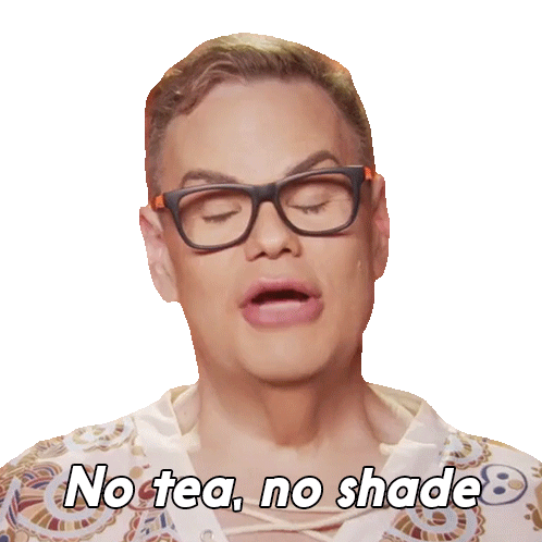Darienne Lake delivers a sassy 'No tea, no shade' with a direct gaze, expressing an unfiltered opinion.