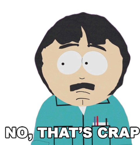 Randy Marsh from South Park angrily declares 'NO, THAT'S CRAP!' while pointing, expressing strong disapproval.
