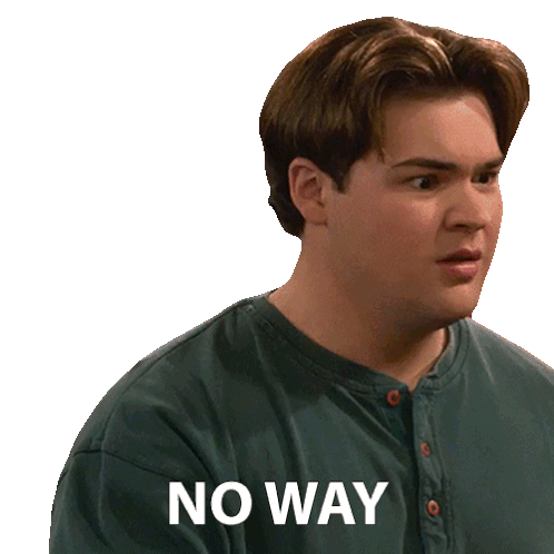 Nate from That '90s Show reacts with disbelief, exclaiming 'No Way' with a surprised expression.