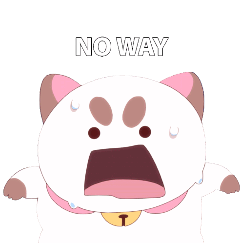 Puppycat from Bee and Puppycat reacts with a wide-open mouth and sweat, exclaiming 'NO WAY' in disbelief.