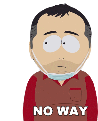 South Park character Stan Marsh expresses disbelief with a shocked expression and a medical mask pulled down, saying 'NO WAY'.