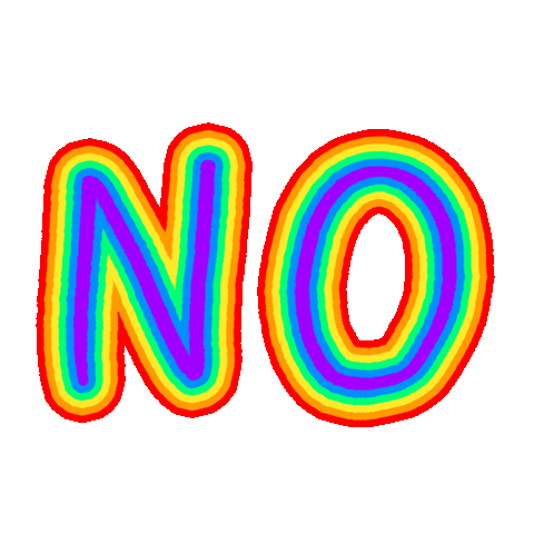 A vibrant, rainbow-colored word 'NO' with a distinct outline, perfect for expressing refusal or denial.