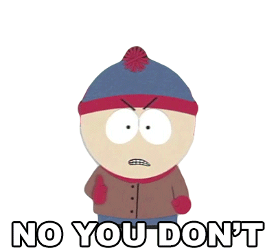 Stan Marsh from South Park emphatically says 'No You Don't' with a surprised and annoyed expression.