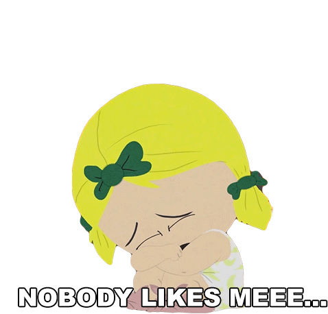 Butters Stotch from South Park cries sadly, exclaiming 'Nobody likes meee...' in this animated sticker.