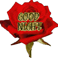 An animated red rose with the words 'GOOD NIGHT' appearing and disappearing, then the rose subtly transforms into a heart shape.