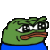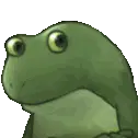 A cool pixel art green frog wearing sunglasses and a blue scarf, nodding its head in a chill vibe.