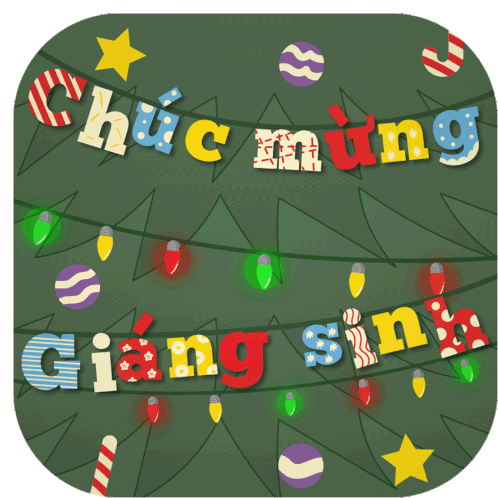A festive Christmas sticker with twinkling lights and ornaments, featuring the Vietnamese greeting 'Chúc Mừng Giáng Sinh'.
