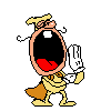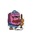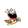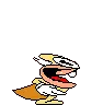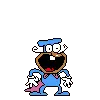 The Noise from Pizza Tower screams with a wide-open mouth, wearing his yellow outfit and cape.