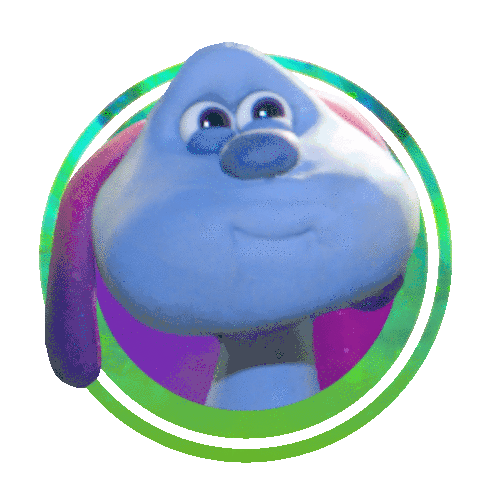 Lula from Shaun The Sheep happily eats with a full mouth, expressing delight with 'Nom Nom'.