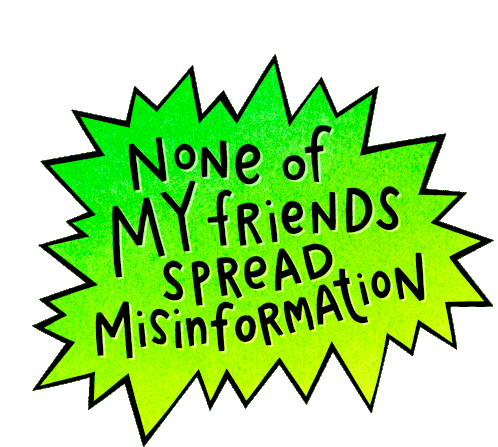 A vibrant starburst sticker with the text "None of My Friends Spread Misinformation," promoting truth and fighting disinfo.