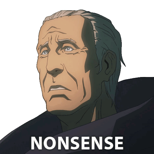 An animated anime sticker of an elder man from Castlevania with a distressed expression, saying 'NONSENSE'.
