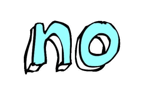 A hand-drawn animated sticker featuring the word 'no' that changes color from purple to light green, expressing denial or refusal.