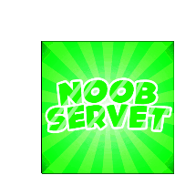 An animated sticker featuring the text 'NOOB SERVET' in white, set against a vibrant green background with radial light rays.
