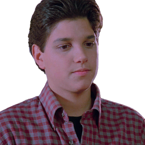 Daniel LaRusso, played by Ralph Macchio, shows a disappointed 'nope' reaction, looking down then up with a thoughtful expression.