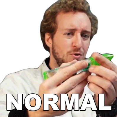 Peter Deligdisch looks curiously at an object in his hands, with the word 'NORMAL' displayed, questioning its ordinary nature.