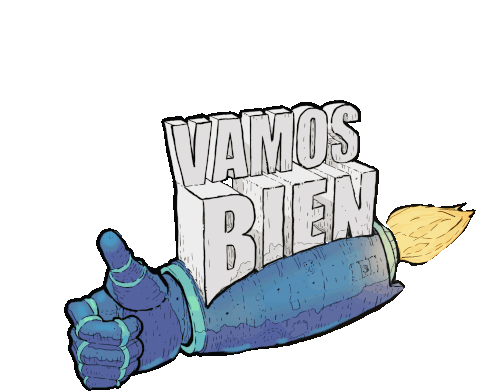 Animated fist sticker by Norte Achac, featuring a dynamic 'thumbs up' gesture and the phrase 'Vamos Bien'.