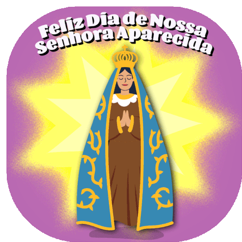 Animated sticker celebrating the Happy Day of Our Lady of Aparecida, featuring the crowned Marian figure in prayer with a glowing starburst.