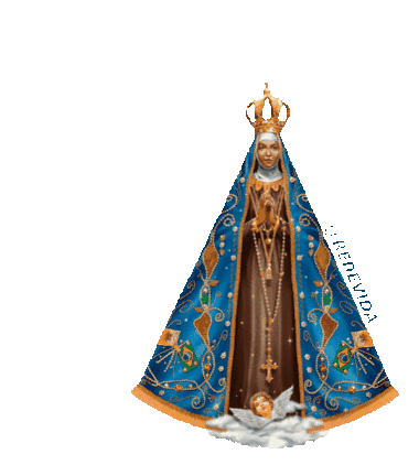 Animated sticker of Nossa Senhora Aparecida, the Black Mother, patroness of Brazil, with a shimmering effect.